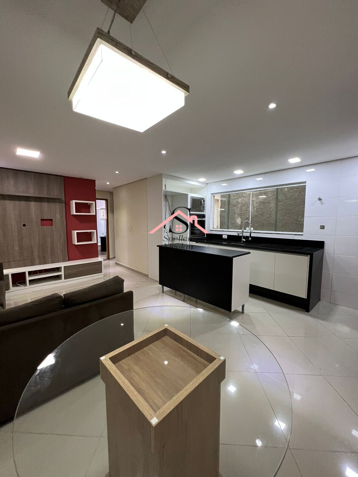 Cooktop por indução, sofá, móveis planejados e forno microondas inclusos;